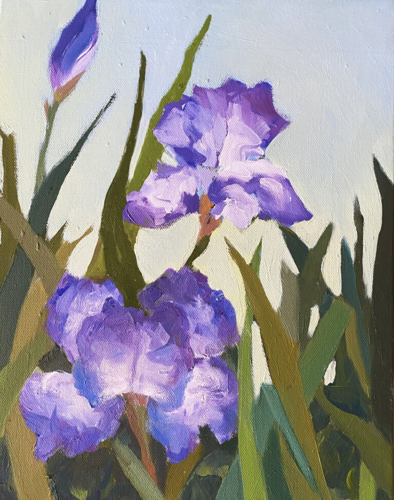Painting of blue irisBlue Iris, 11x14 oil on canvas, SOLD